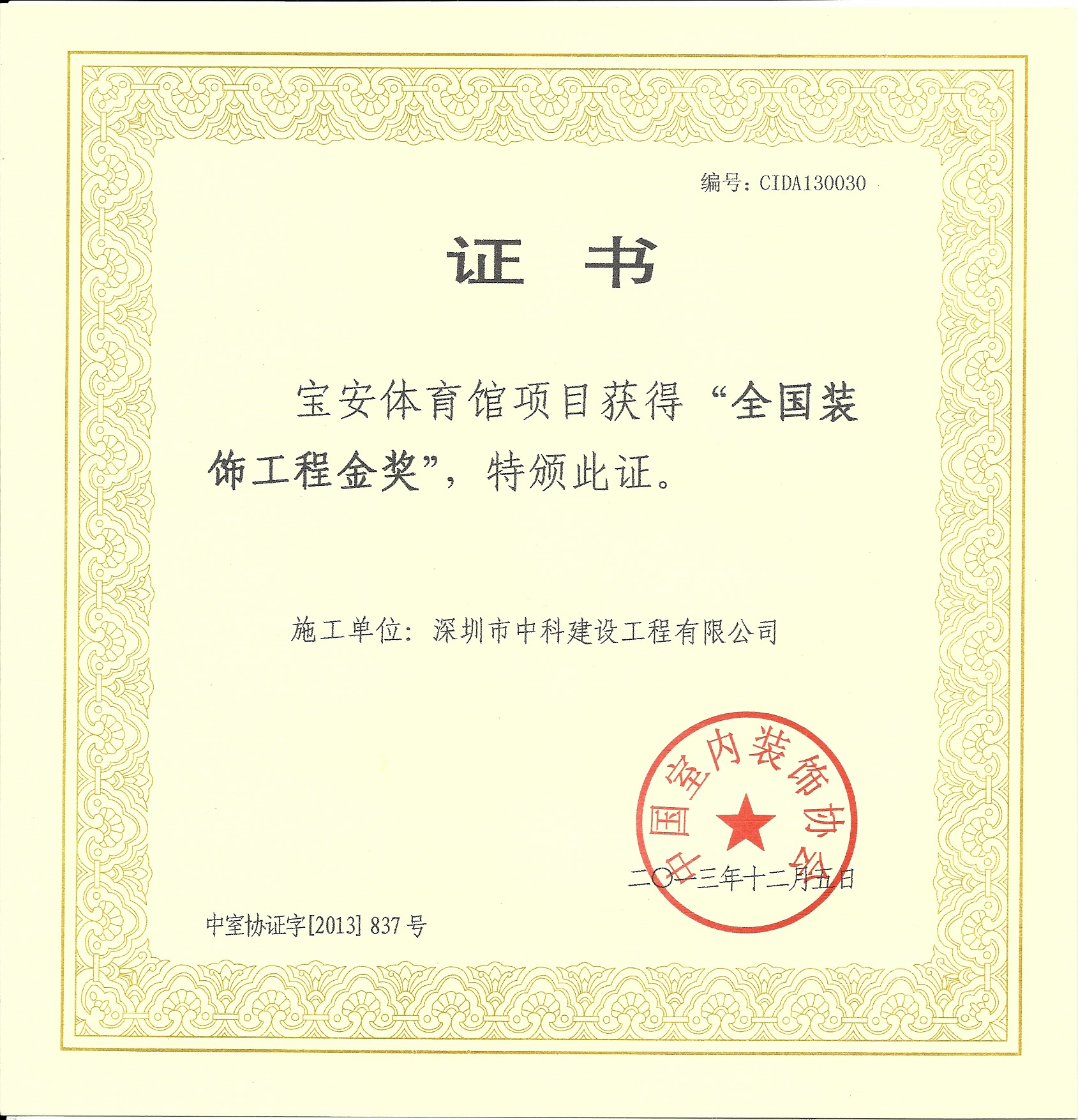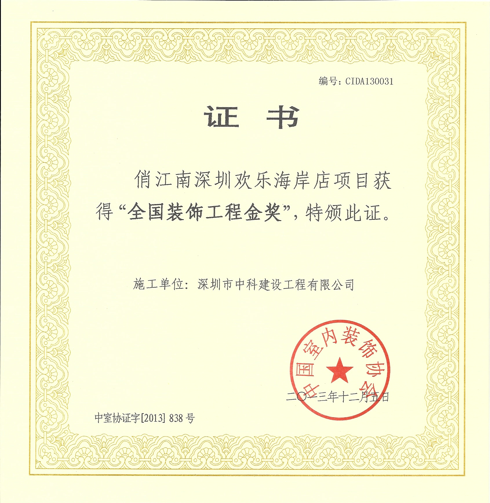 全國裝飾工程金獎(jiǎng)