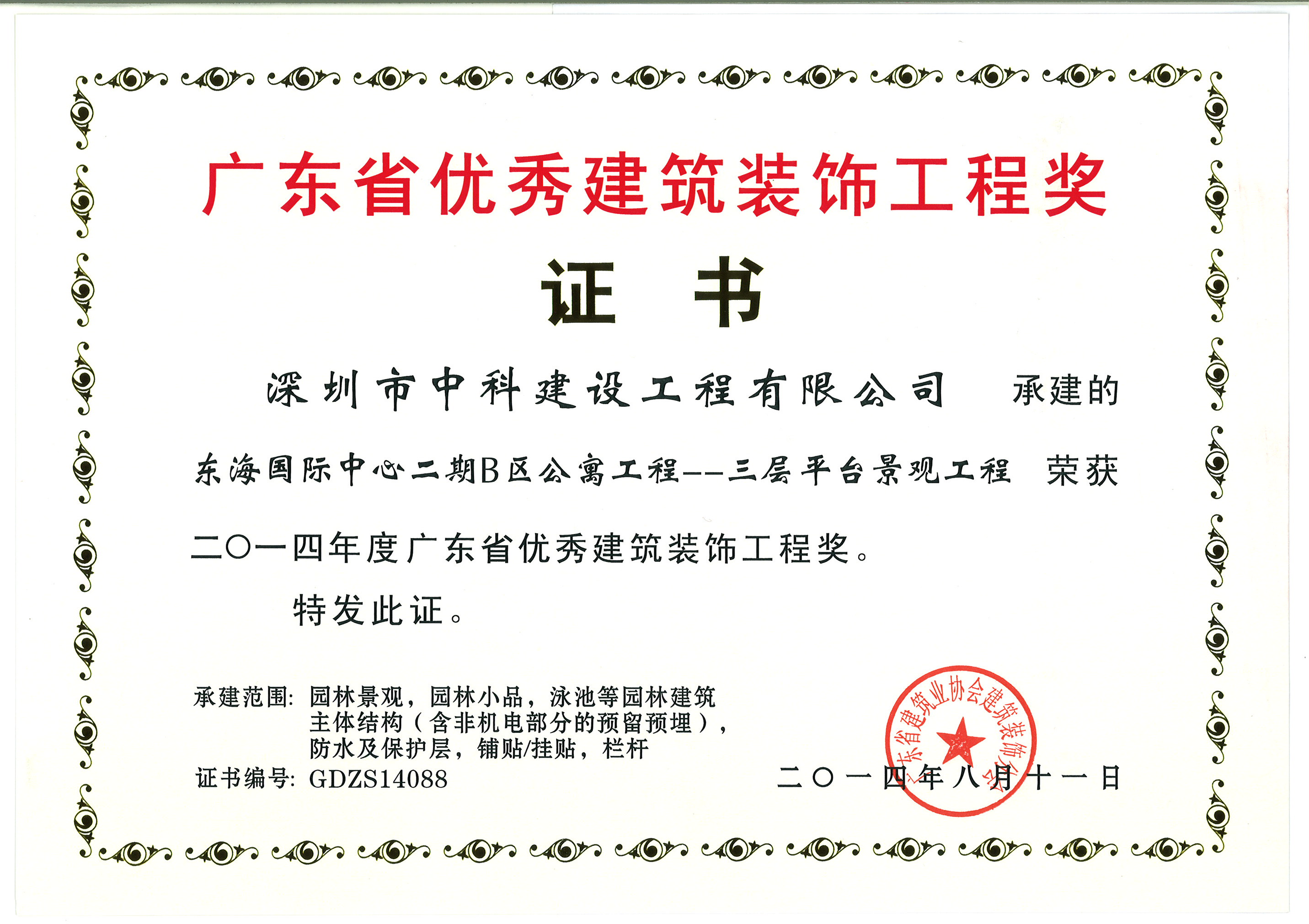 廣東省優(yōu)秀建筑裝飾工程獎(jiǎng)