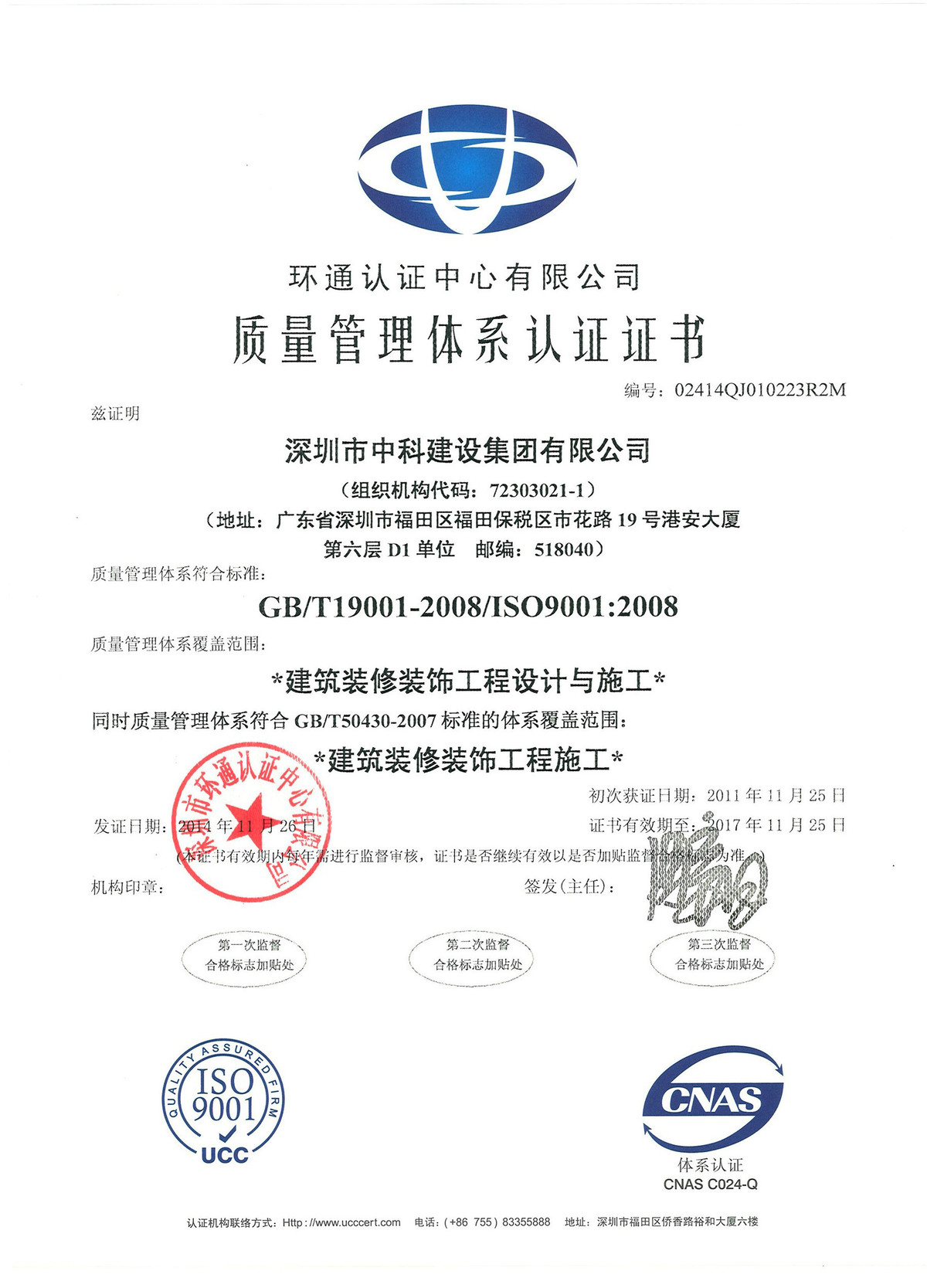 質(zhì)量管理體系認(rèn)證證書