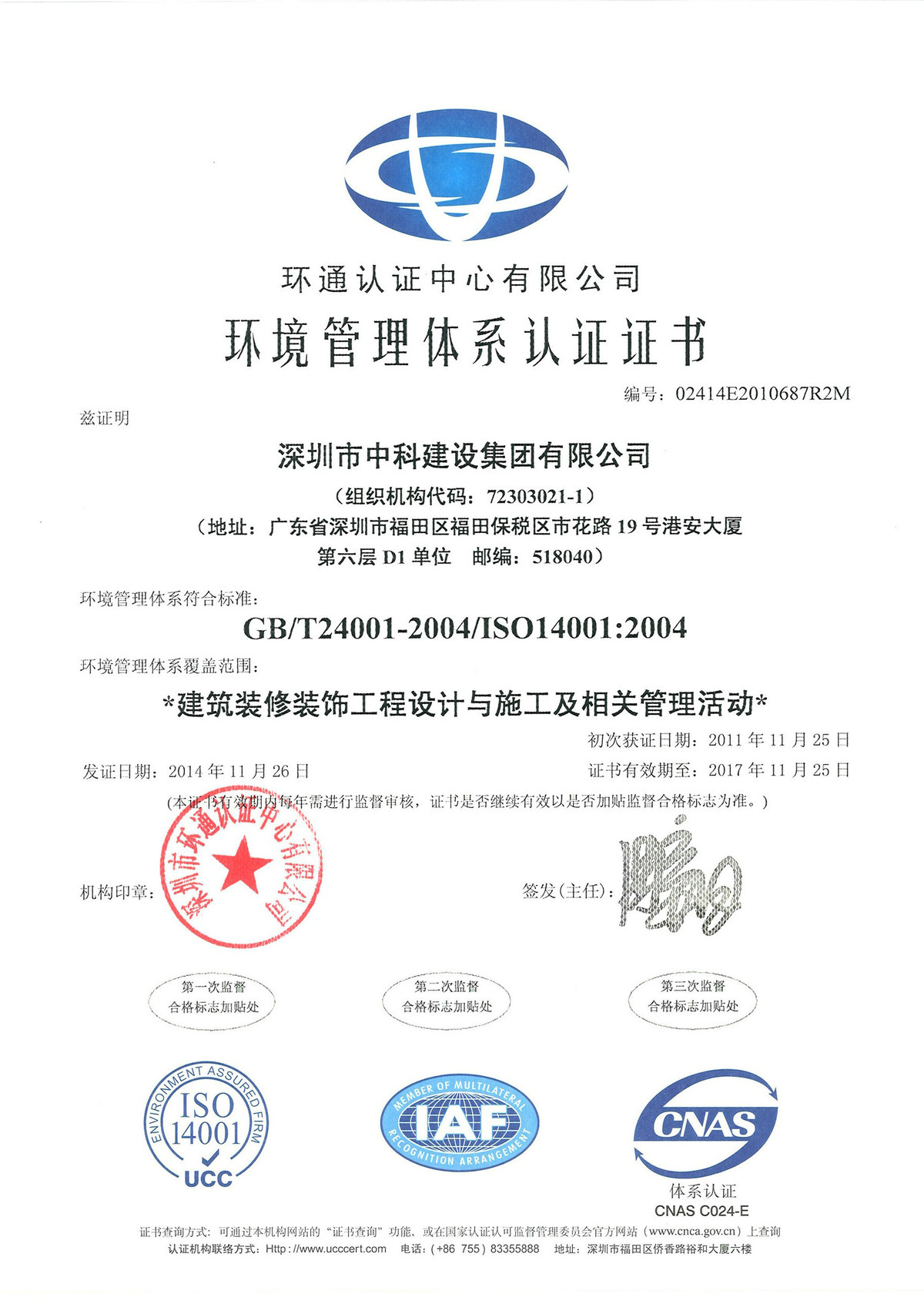 環(huán)境管理體系認(rèn)證證書