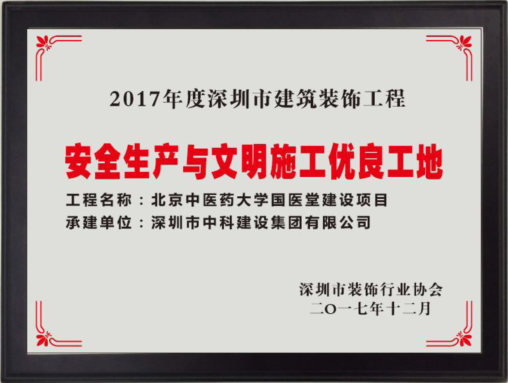 2017年度“深圳市建筑裝飾工程安全生產(chǎn)與文明施工優(yōu)良工地”榜單揭曉,由中科建設(shè)集團(tuán)承建的北京...