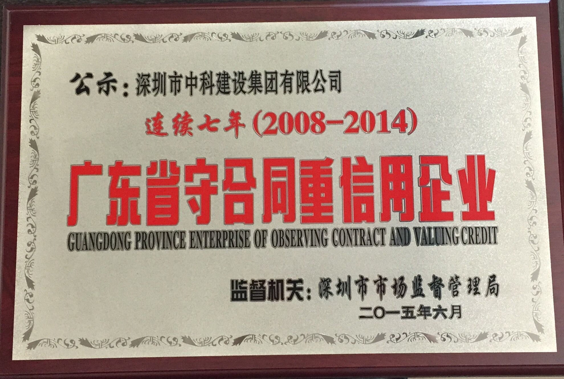 中科建設(shè)被授予“廣東省守合同重信用企業(yè)”的榮譽(yù)稱(chēng)號(hào),這是中科建設(shè)自2008年以來(lái)連續(xù)七年獲此殊...