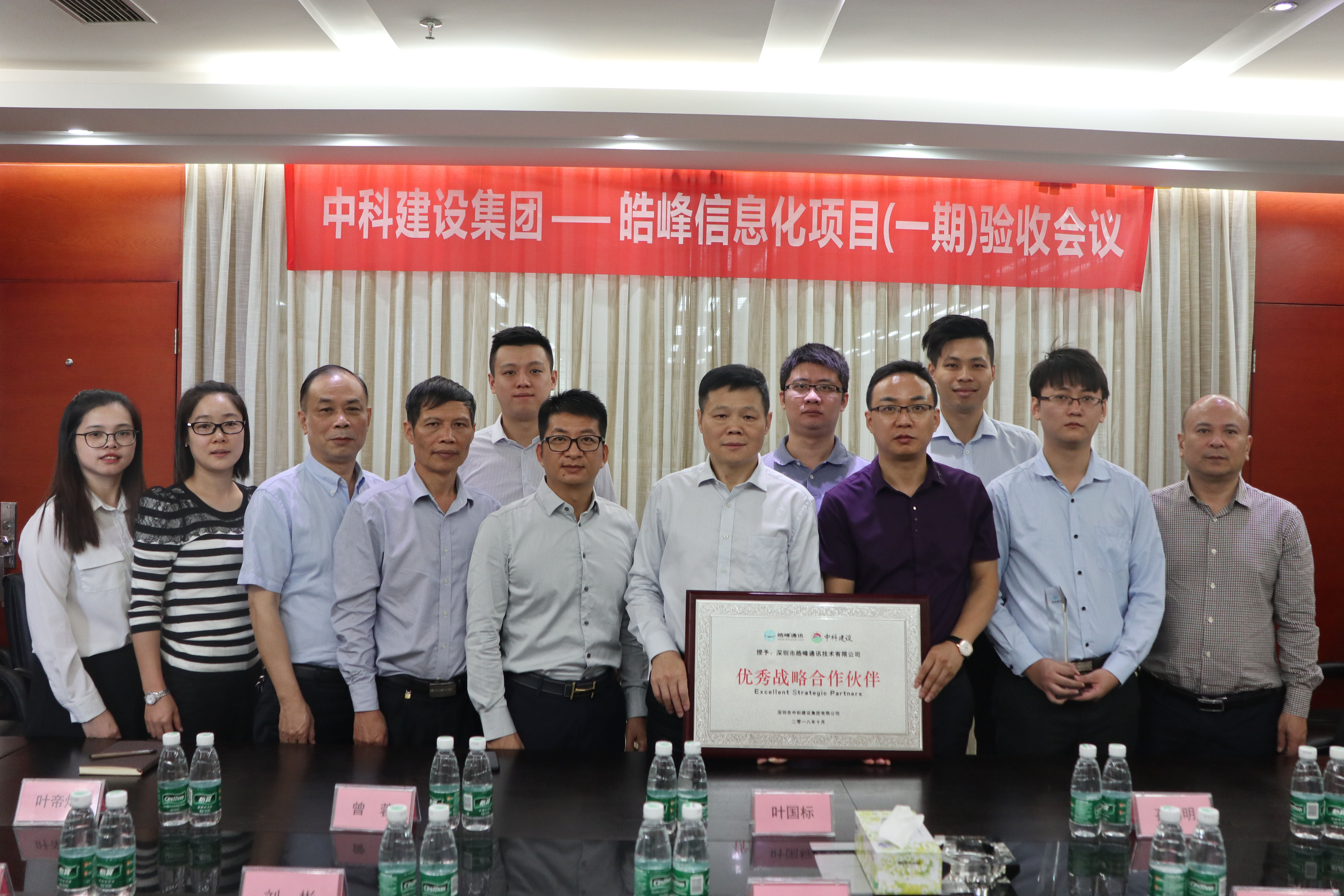 金秋十月,正值收獲的季節(jié)。2018年10月30日上午,中科建設集團信息化項目(一期)驗收會議在集團總部召開,中科建設集團董事長葉國標攜高管及信息化項目小組成員出席會議。項目實施單位深圳市皓峰通訊技術有限公司毛孝鹍總經(jīng)理帶領項目實施團隊共同參加本次會議。